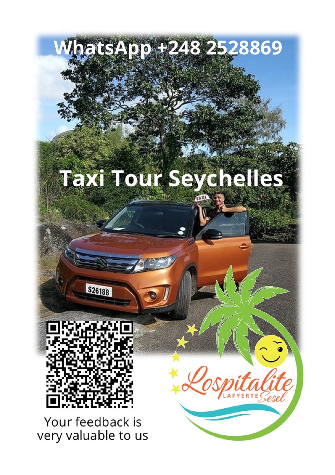 You can also book via email while planning your holiday in Seychelles crazzmusic@hotmail.com. Book in advance the pick up at the airport and a tour of the island. You will not found a better package and a better service.